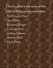 This booklet is the work of the 50th birthday party committee: Sid Dreese (Chair) Sara Baum Rosemary Deegan Catharine Resh Lindsay Sakmann Amanda Walck Heidi Ziemer